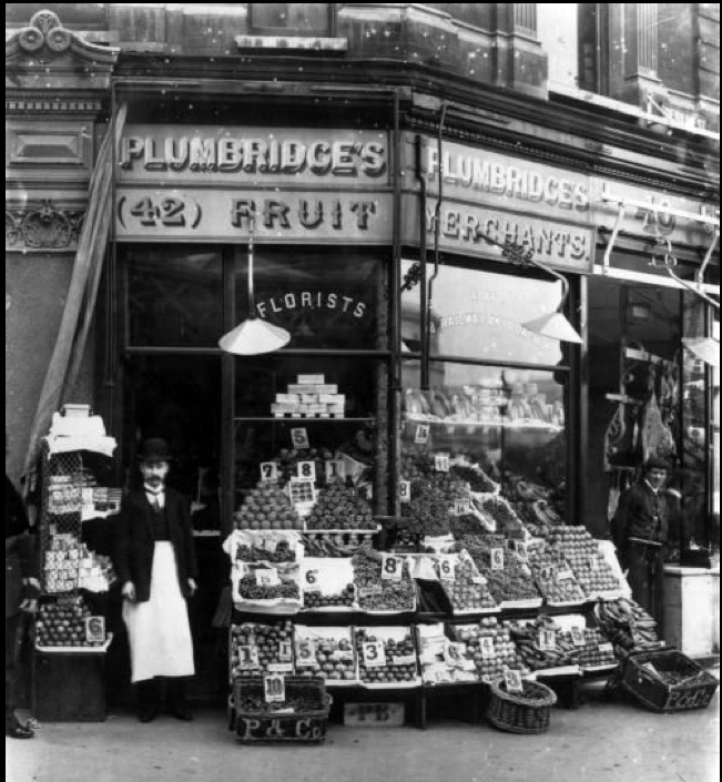 Reference image 1 – This section explaining how buildings change with time (in particular shop signs) made me want to explore examples of 19th century shop signs. This website provides a really great selection of shop owners and lettering on the forefront of shops (see below):