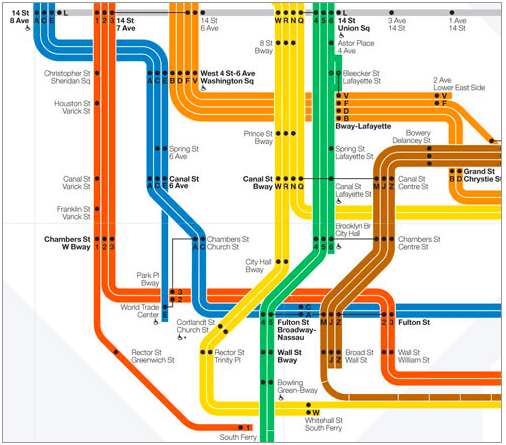 Funnily enough there is a quote in the reference material above where Vignelli states: “I probably should have done what they’ve done in London—not have any indication of the geography. It’s a completely blank, white background so that there is no suggestion of geography whatsoever.” so I’m pleased that’s instantly what I noticed. It’s really great to see how other successful designers influence even those who are really successful, and elements can be taken from others to improve.