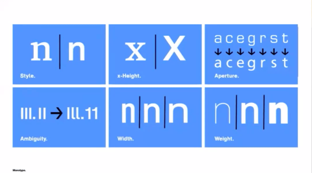 James Fooks-Bale hosted a half hour webinar on Monotype showing how type is adapting to be used digitally and shared some valid points so I have taken some notes and screen shares of his slides: