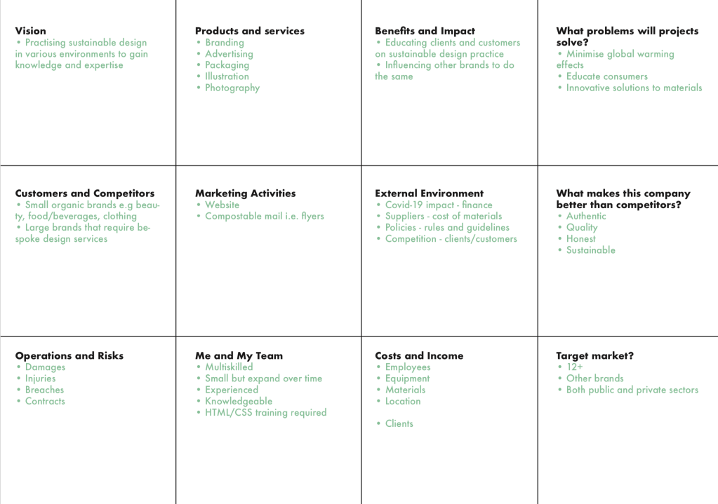My mini business plan: