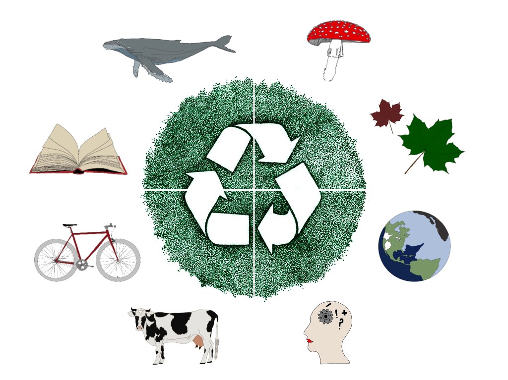 I have tied them all together with a central dotwork image as dotwork is something I have been doing for over a year in my free time, and although it’s not my main field of practise I do really enjoy it and I strongly believe that success will come from doing what you enjoy. I have decided to draw arrows representing a cycle, as I feel each section is continually evolving as I grow as a designer. Being green, it also reflects on sustainability and the way I approach my work.