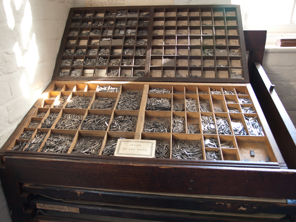 I loved the fact that ‘upper’ and ‘lowercase’ terminology for punctuation dates back from when letters were stored in cases for movable type machines. I remember using these in undergraduate studies for making letterpress work and I did not know this. The largest sections will be for vowels as they’re the ones that will be used the most. Letters like ‘x’ would be used far less and have a smaller section.