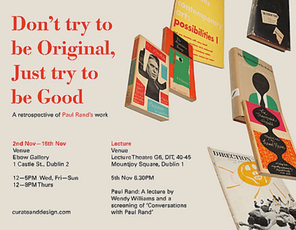 This quote by Paul Rand was the title of his exhibition in Dublin. There are many examples of why I could disagree on this quote except for one; typography. From experience, you cannot apply the same principles of art to typography. Yes, many experiments are required but I believe there are more rules when it comes to designing/setting out type. If you follow the rules with typography and apply them accordingly, you will be successful as opposed to being ‘original’ and just doing things without thinking about it.