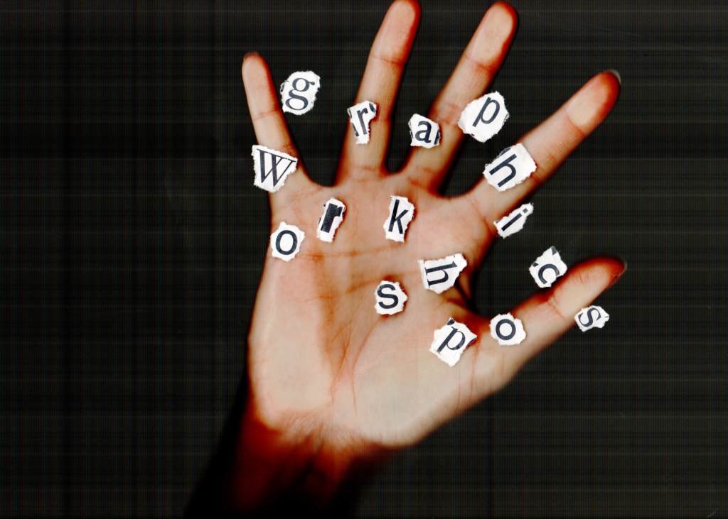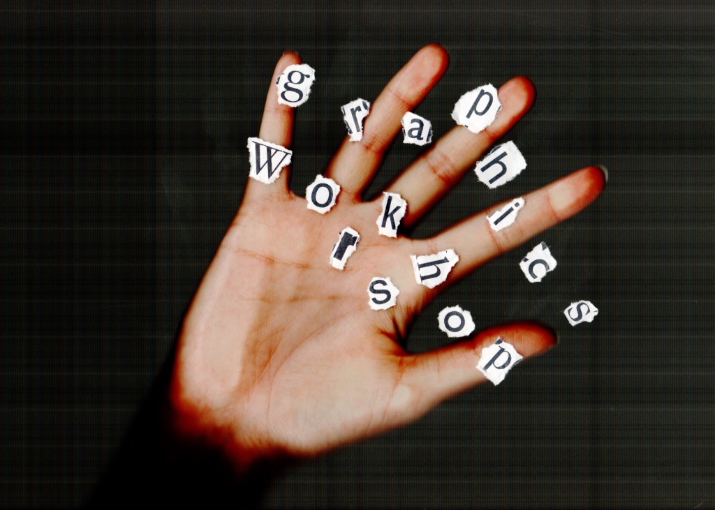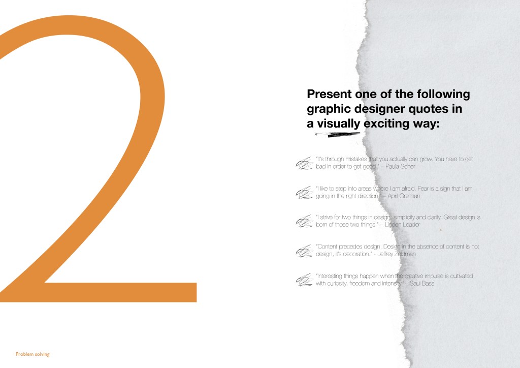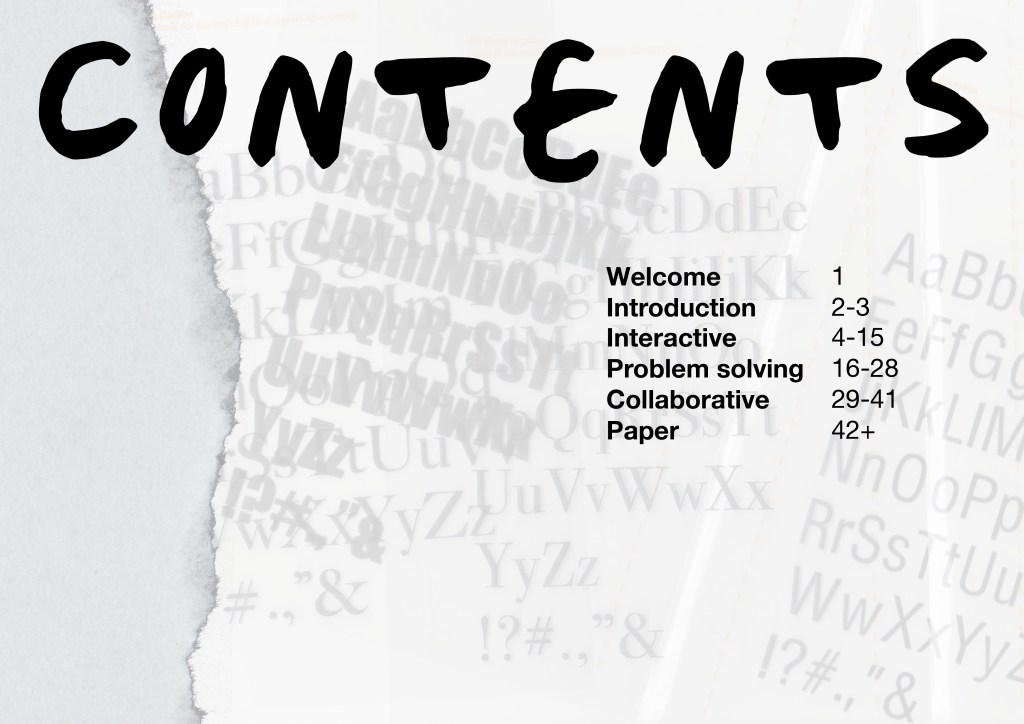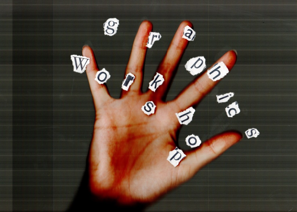 As per my feedback I revisited the scan with the ripped out lettering and printed out letters that are in the brochure itself, which I ripped out by hand and then placed on the scanner with my hand overlaid on the top. The creative message is strong in this cover as the hand is essentially a tool in this workshop; designers will be encouraged in all activities to leave their computer mouses behind and use their hands to hold stationery, paper and this brochure:
