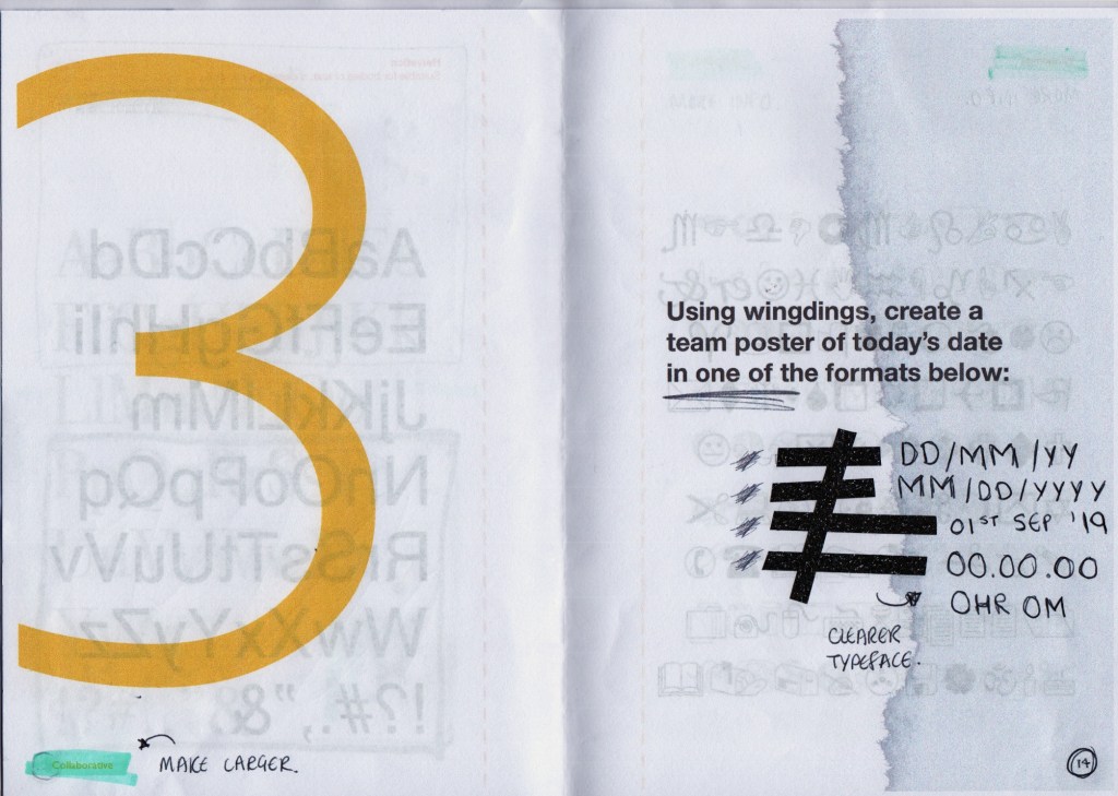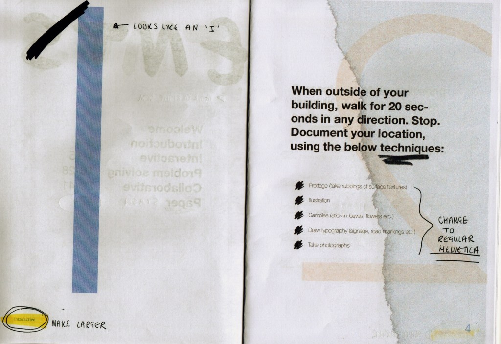 • Identifying that the tear out pages print back to back – I will action the amendments I have drawn above; the layout needs to change so that it doesn’t interfere with the next/previous pages