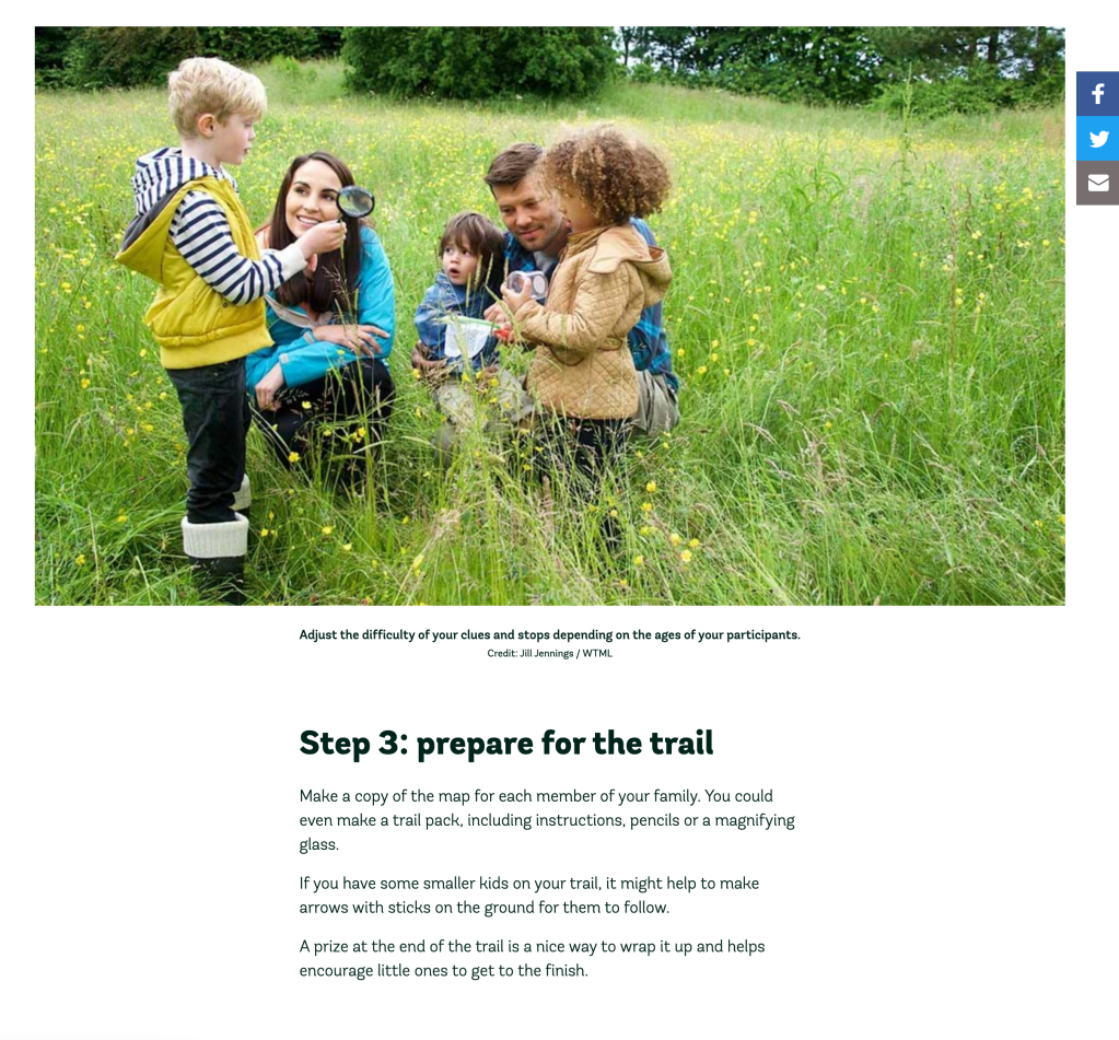 To better understand my audience I wanted to research about what trails do already exist in my area, and who the audience is for those. There is a Parks Trust who host walks too so this would be interesting to explore:
