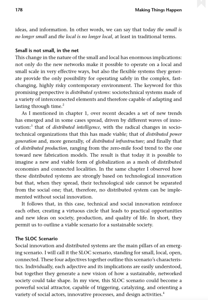 - SLOC scenario – small, local, open and connected approach to generate a vision of innovation and sustainable society.