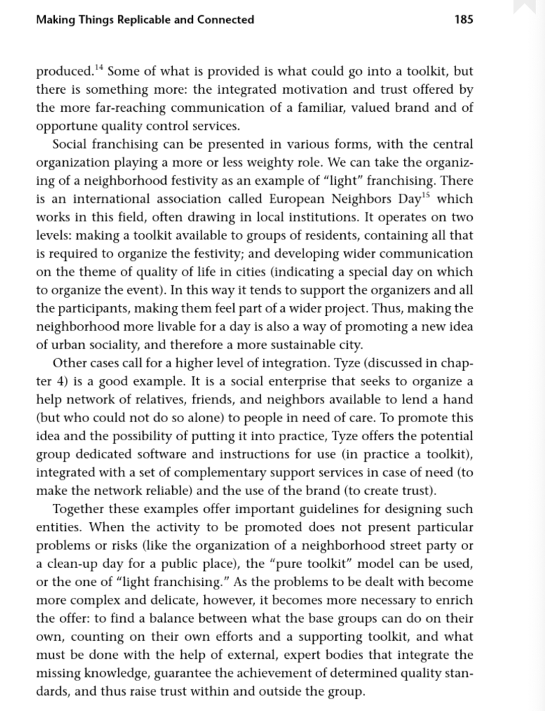 - Social franchising is to promote collaboration – this is a toolkit designed specifically for the franchisees who can implement it locally.