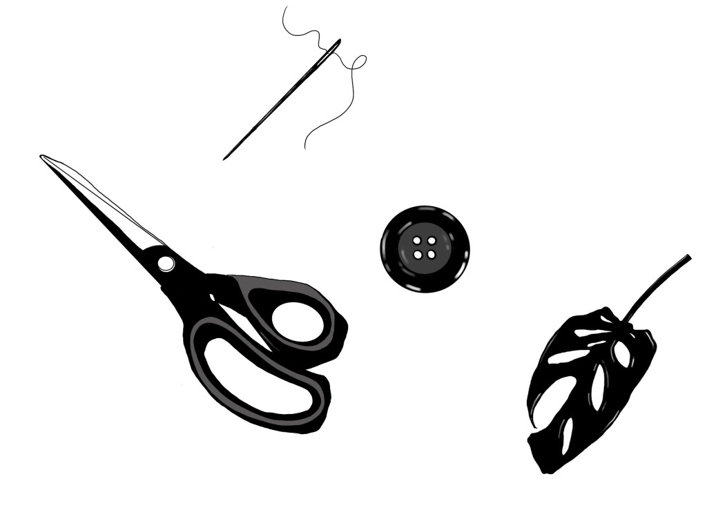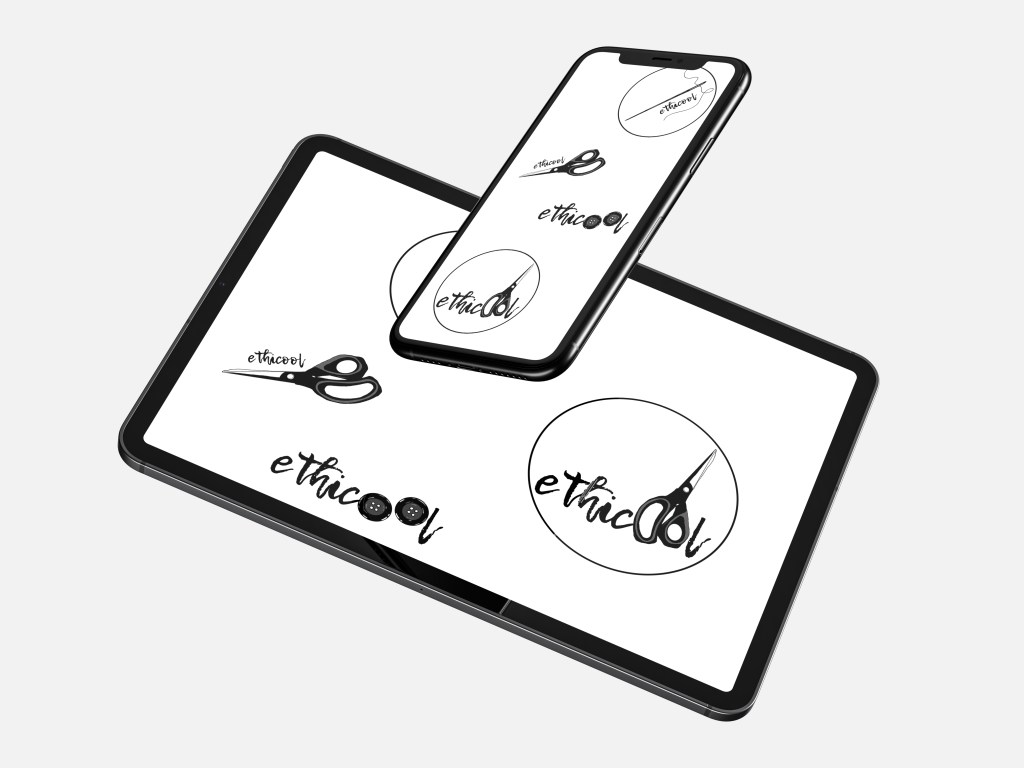Mocking up my four logos that I drew on Procreate from sewing apparatus to see what design looks best: