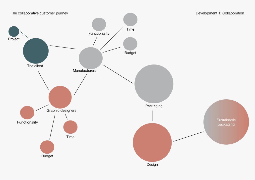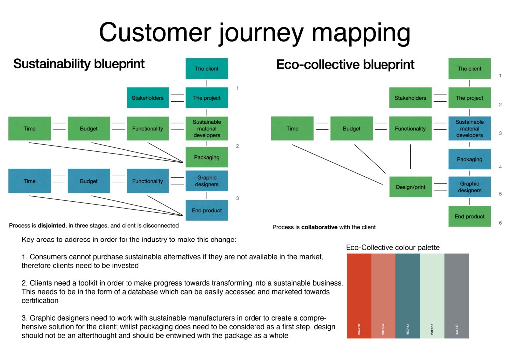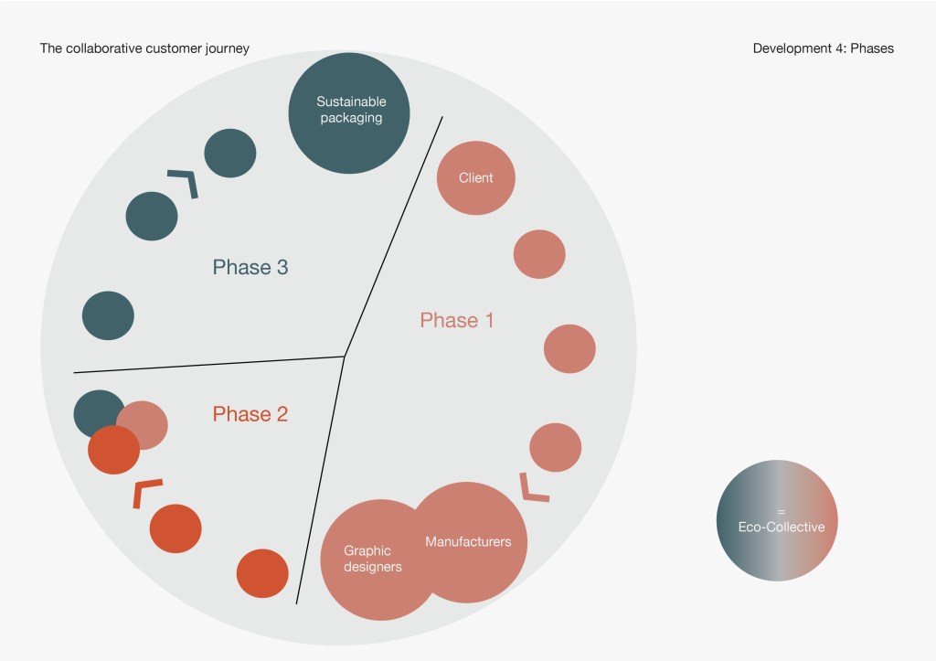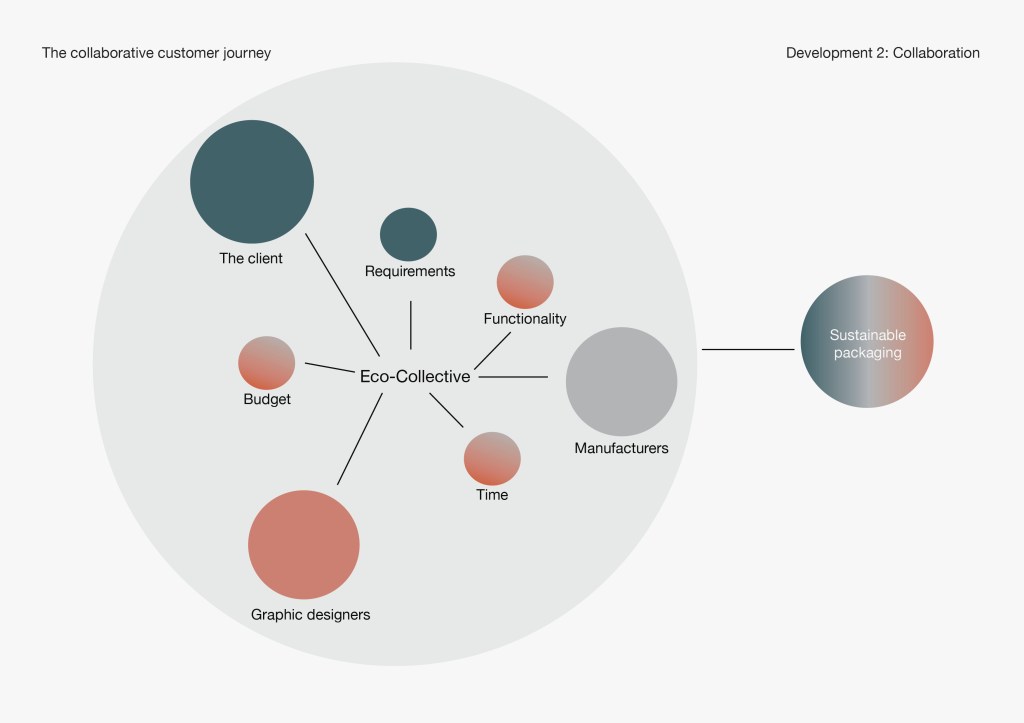 Eco-Collective customer journey encourages manufacturers and graphic designers to have discussions with clients regarding project requirements, packaging functionality, timeframes and budget.
