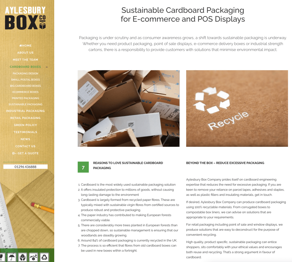 Luke Jamieson, director of Aylesbury box company has given me insight into the companies design process as it currently stands, and how they approach sustainability. Surprisingly, Jamieson stated that only 20% of clients request sustainable alternatives to packaging. One of the most interesting insights from our discussion is that the remaining 80% of customers are either unaware of the sustainable material and methods available, or simply haven’t considered or factored it into their requirements. In fact, due to Aylesbury box company making the conscious decision to use FSC certified paper/cardboard throughout the whole company (at a worthwhile additional cost – meaning this is also factored into the price the customers pay and is often higher priced than competitors), 80% of clients are choosing the sustainable option regardless. This tells me that given the option, clients will consider sustainable packaging alternatives.