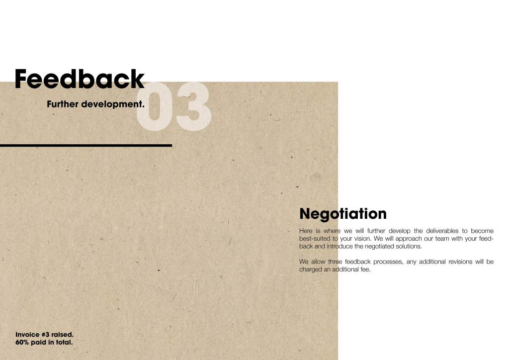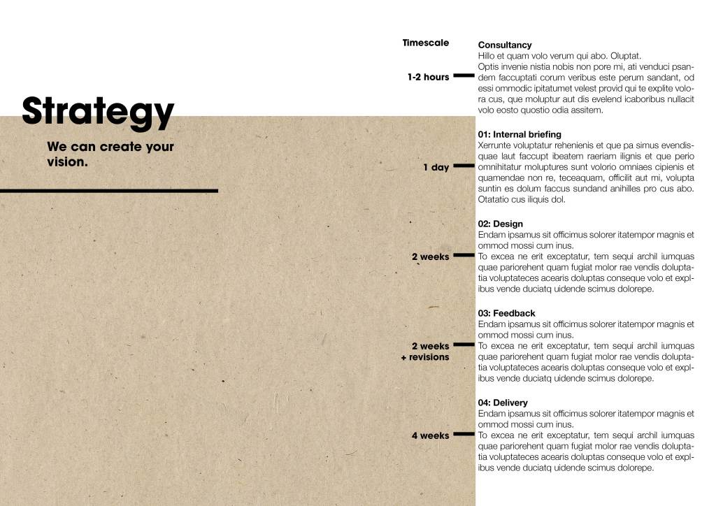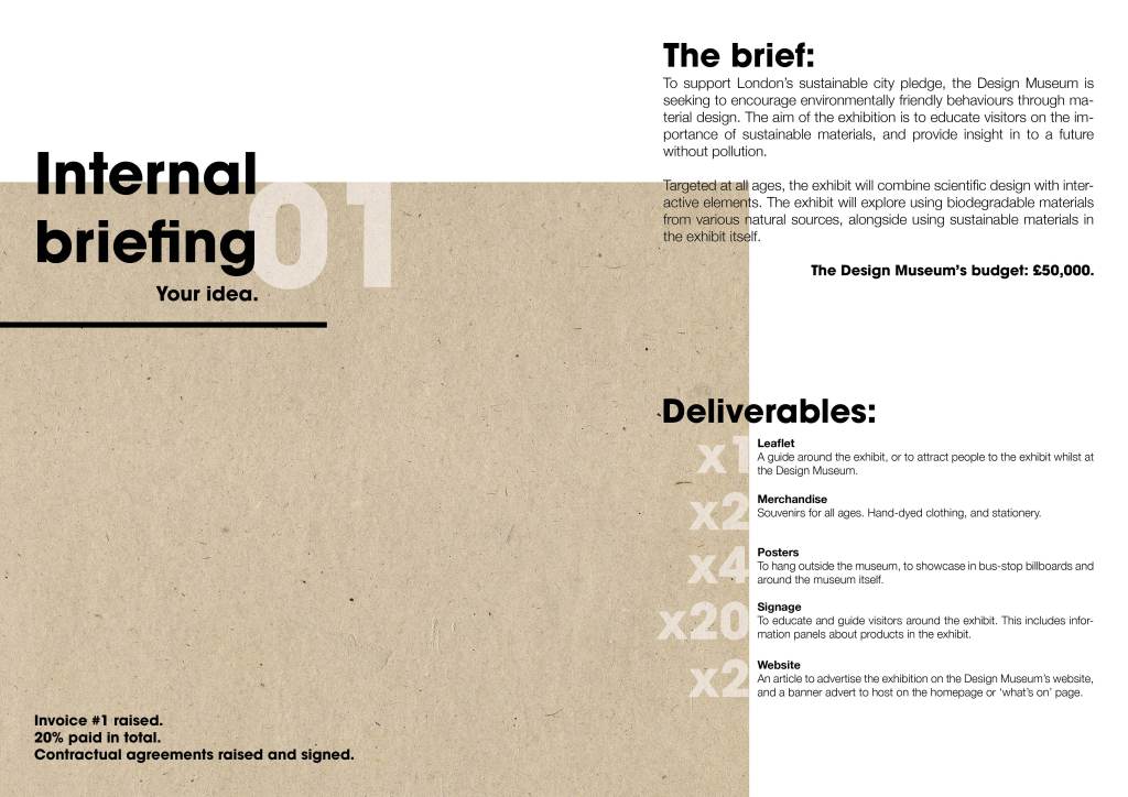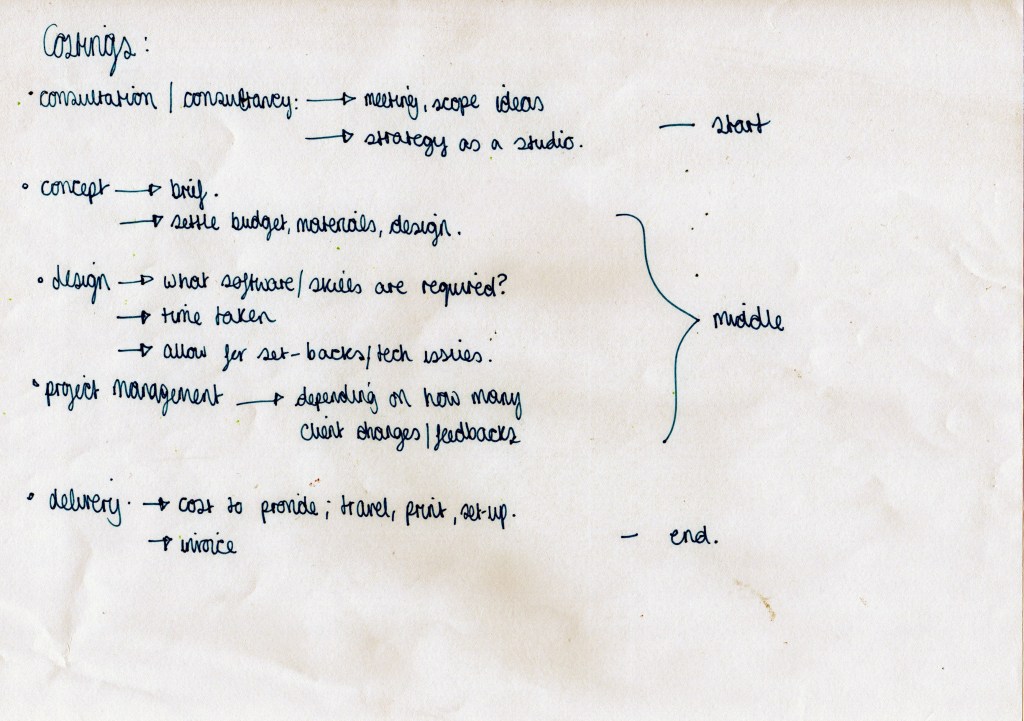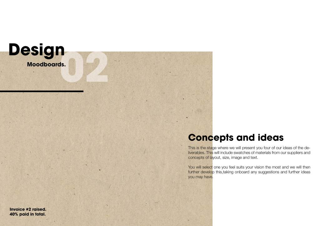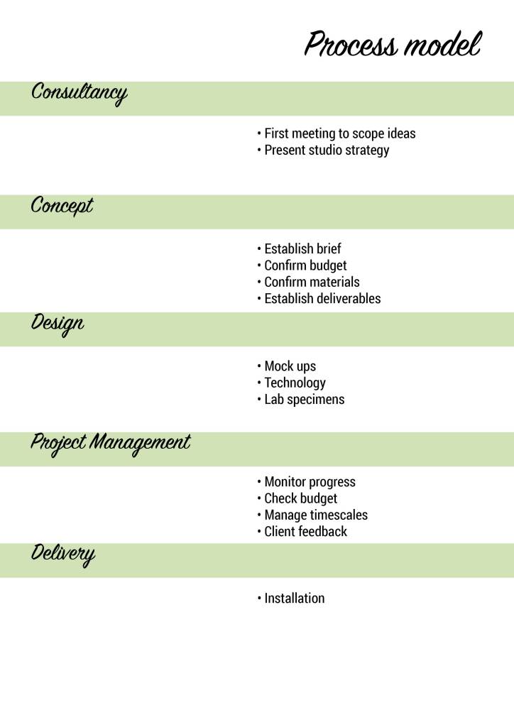 I wanted to draw up a design that would almost be like a brochure that my studio would give the client to take home, to think about. I wanted to highlight a process; however it’s vague and doesn’t mention anything about my design process as it’s been designed with the client in mind.