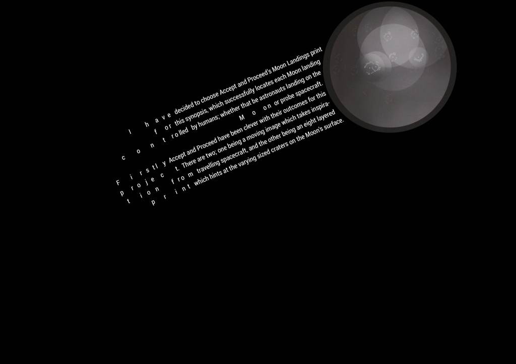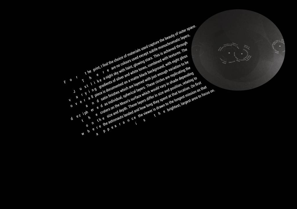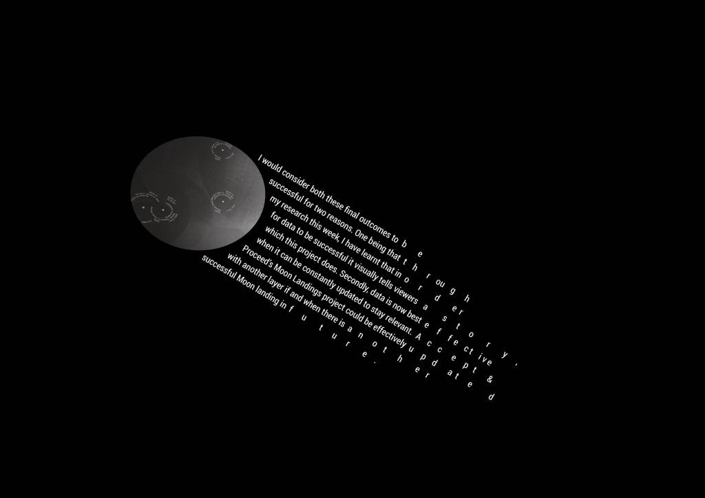 Removing the circles in the background to de-clutter the image, but more importantly give my typography space on the page. I had feedback from my tutor that the comets seem like they resemble space on their own, and potentially anything in addition wasn’t needed. I wanted to test out this: