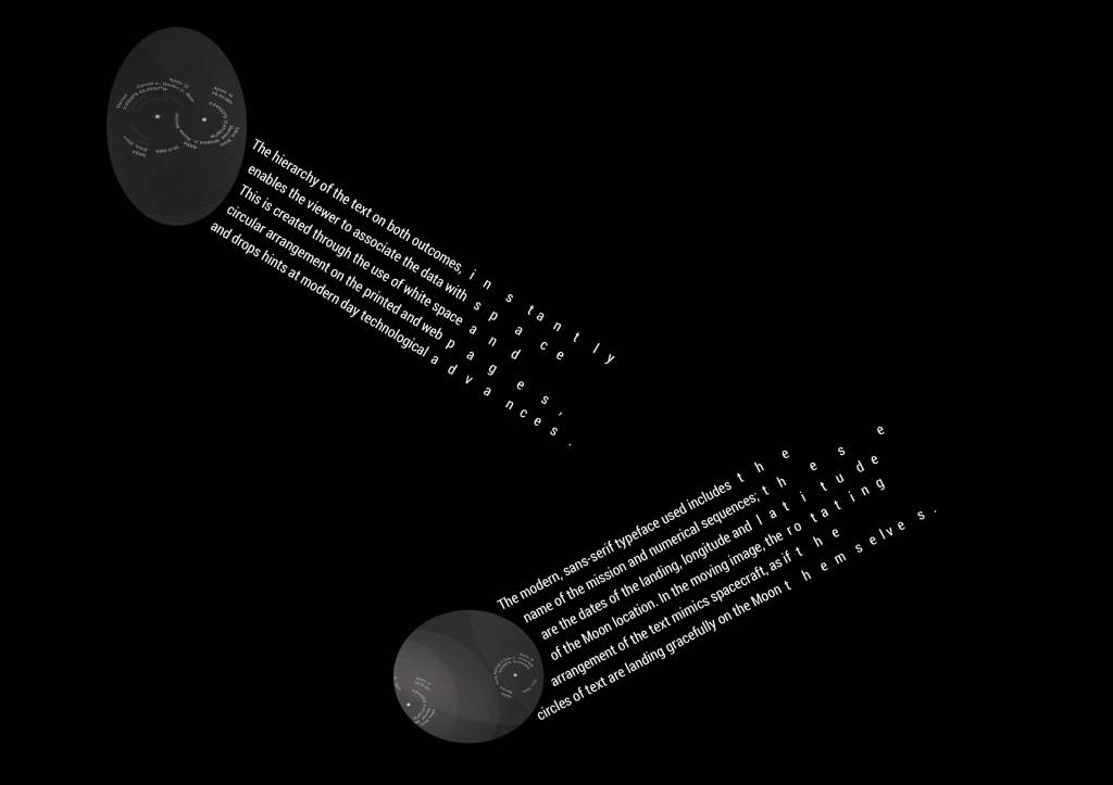 Arranging one of the circular images on the edge of the page brings the viewer in closer to the page, as it feels like we are in the solar system itself.