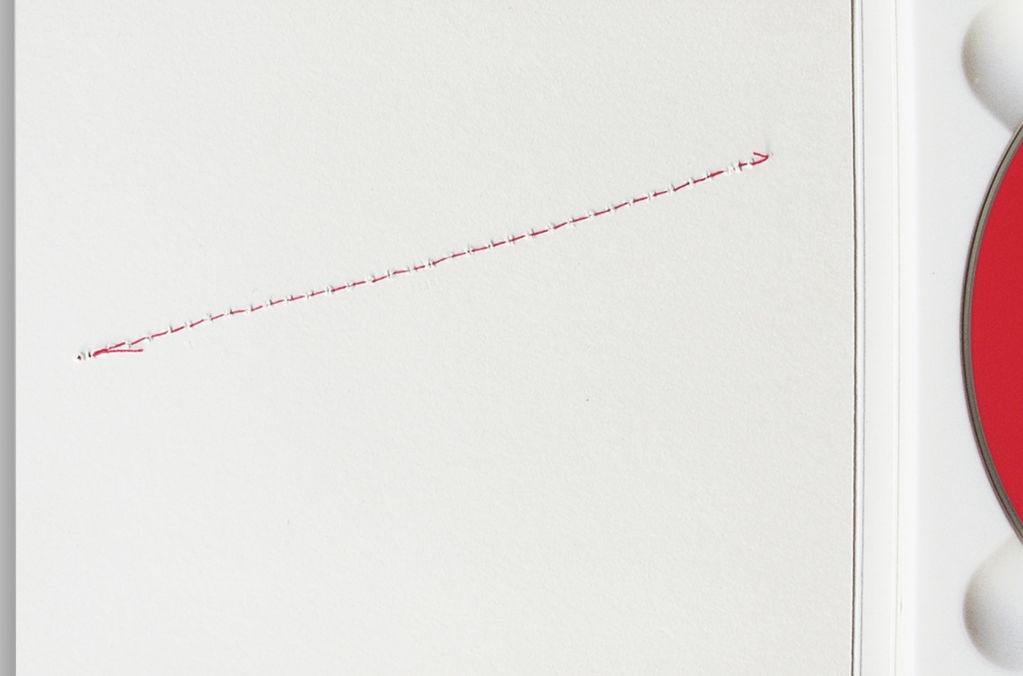 I love this packaging, the rawness of the thread just sewn (what seems like quite randomly) creates a beautiful piece of album artwork. Non-Format have thought outside of the box, and applied a mixed-media technique of thread and sewing to a record/CD sleeve. There is a powerful connotation with the thread and the label, that the sleeve is now personally owned by the artist. I really admire the whole mixing process of not limiting clothes labels solely to clothes – why not have them on records or music memorabilia?
