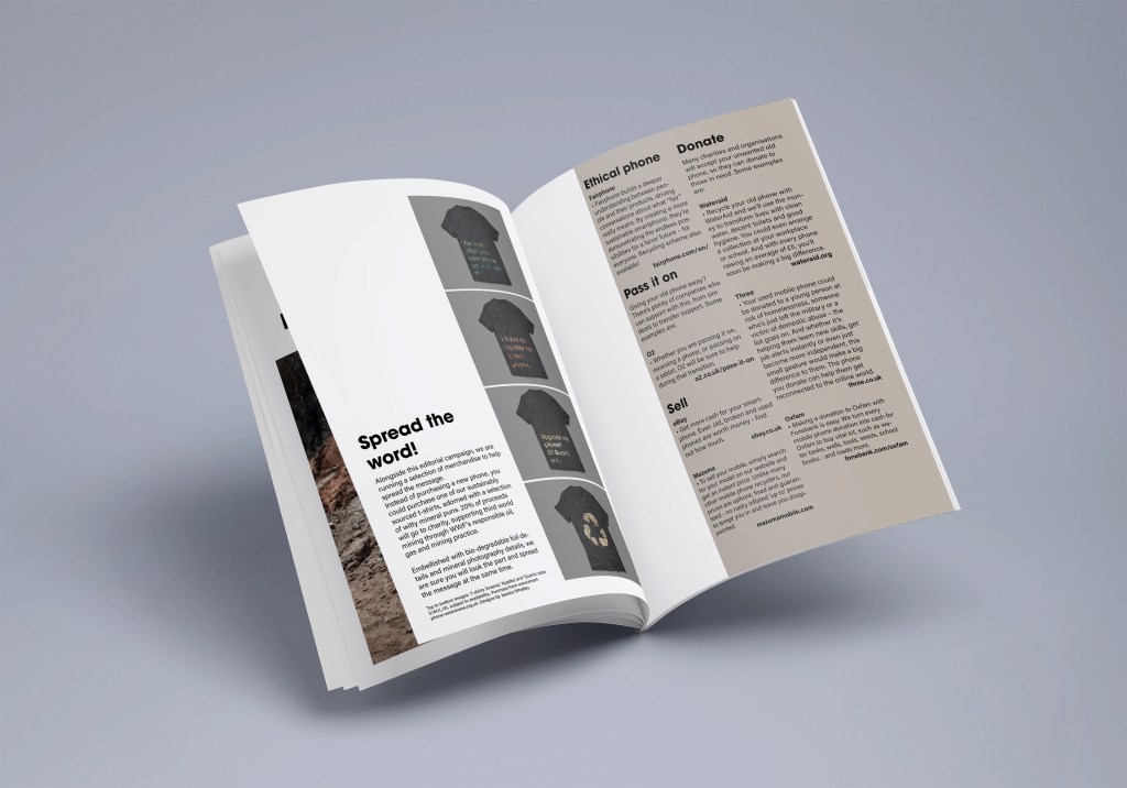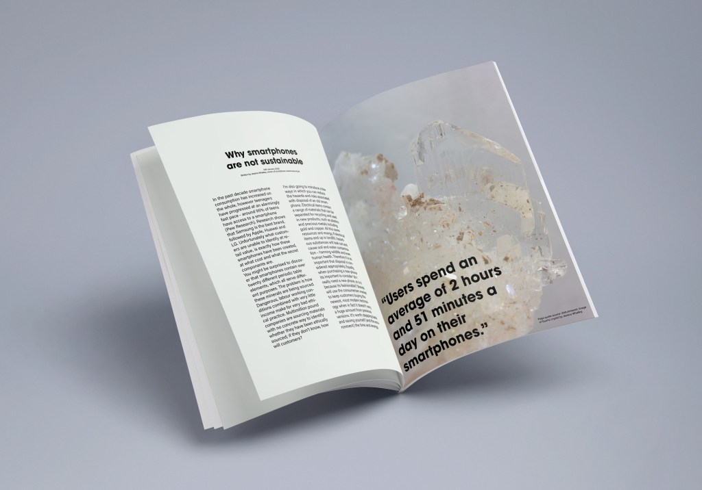 I have surprised myself with this project, considering I had picked something that wasn’t in my comfort zone (the ethical side, not the Minerals). As a designer I tend to sway away from political context and so this was really great practise for me – I strongly believe as graphic designers we need to be aware and interpret what is going on in the world around us. This project has helped with that.