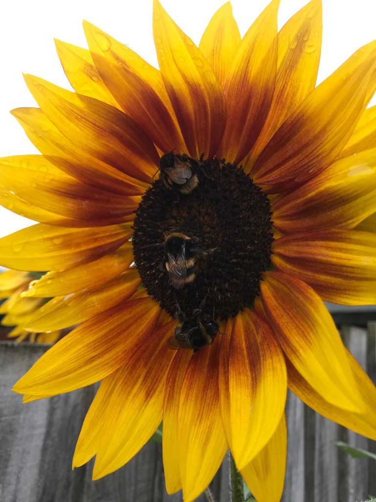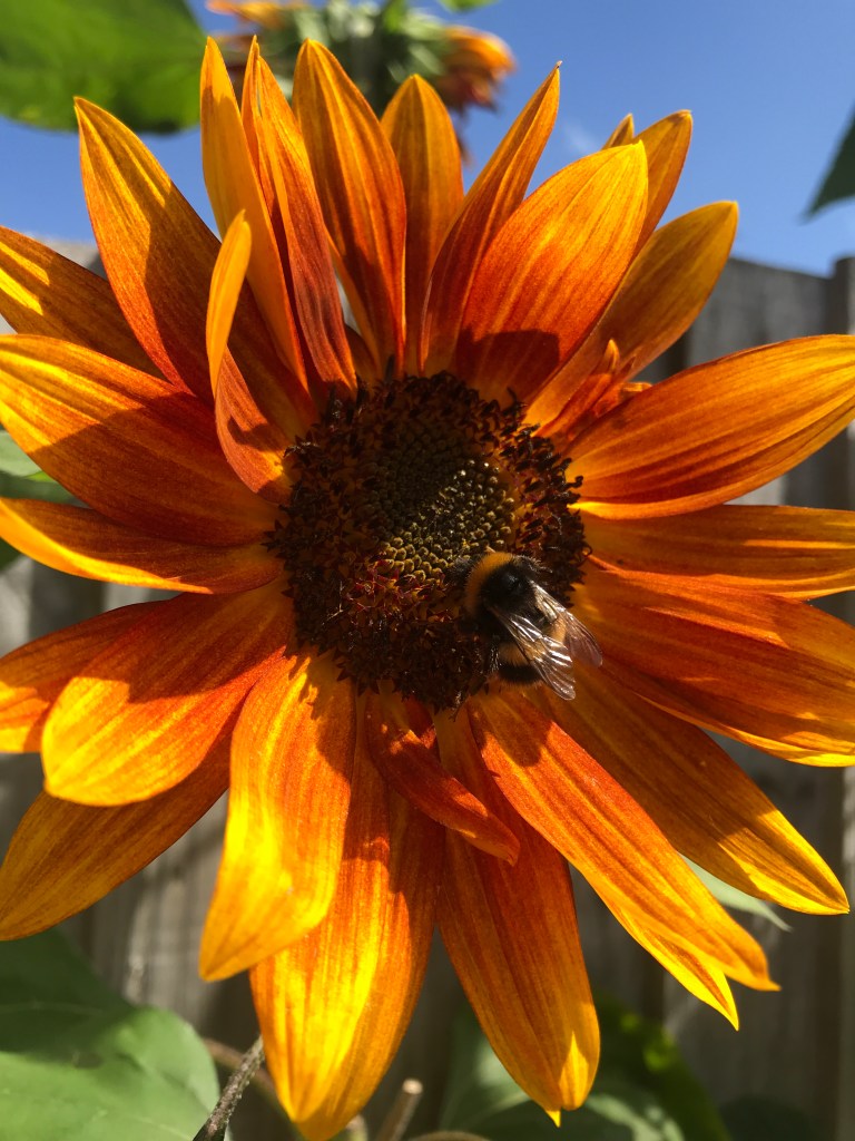 So why do bees love the red/orange sunflowers AND the purple plants? This is down to the blue halo reflecting through light shining on the plant, according to Nature article ‘How flowers get the blues to lure bees’: