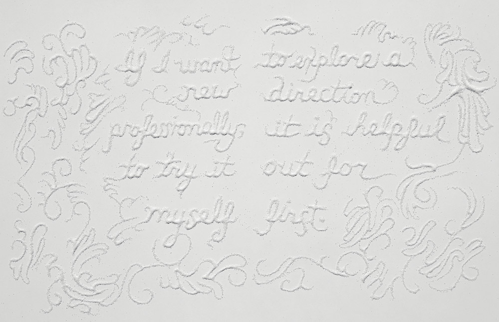 White on white breaks the rules, but the texture works. I actually really want to try this myself, using the same colour on a background and only using textures to create contrast. It’s subtle but effective.