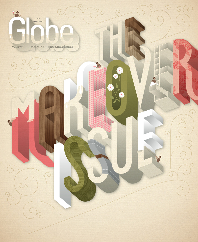 Left: The Makeover Issue – I love the colour palette here and the mini people literally doing the makeover to the letters. The 3D typeface works so well for this idea. Right: Long Live the Oceans! – so great to see Hische also designs for environmental awareness. This is an inspiring piece to me as there’s a large combination of image and text; a really detailed piece yet the message is clear and concise.