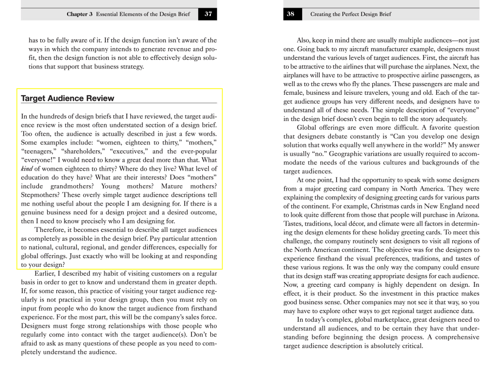 The target audience section: I already know from getting to week 8 in this module and having to step backwards (because my proposed solution didn’t fit my brief), that getting the audience nailed is so important for a brief so I really want to focus on that. I want to know the details, graphic designers but what type of graphic designers and why? Hopefully this will bring about a better understanding of what my outcome involves.