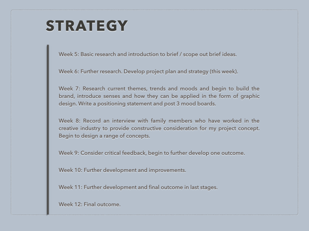 Week 6: Further research to refine my audience to Graphic Designers of all ages. Develop project plan and strategy to ensure my concept provides a solution to the problem of Graphic Designers struggling with mental health.