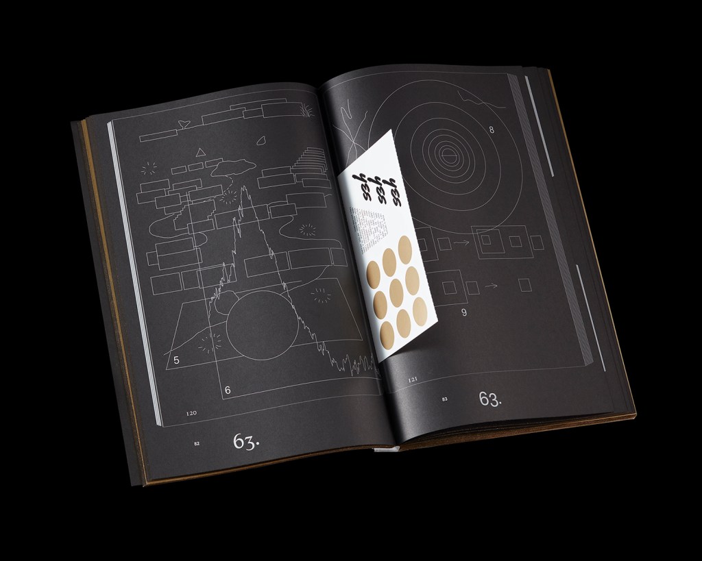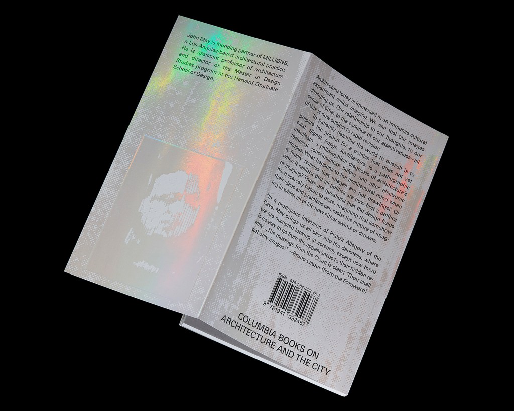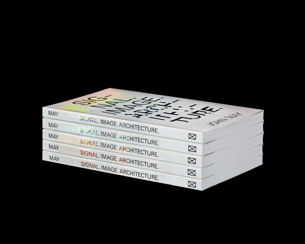 I have a fascination with holograms and holographic rainbow foiling, and really love the typography on Coombs’ “Signal Image Architecture” cover. I just love the way the type is contrasting with the light bouncing off the cover which produces a multicoloured background. The typography layout is also visually interesting as it’s distorted and paired with a sans serif typeface. It’s clear, colourful and intriguing.
