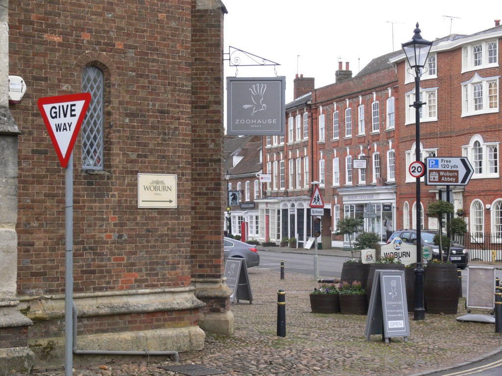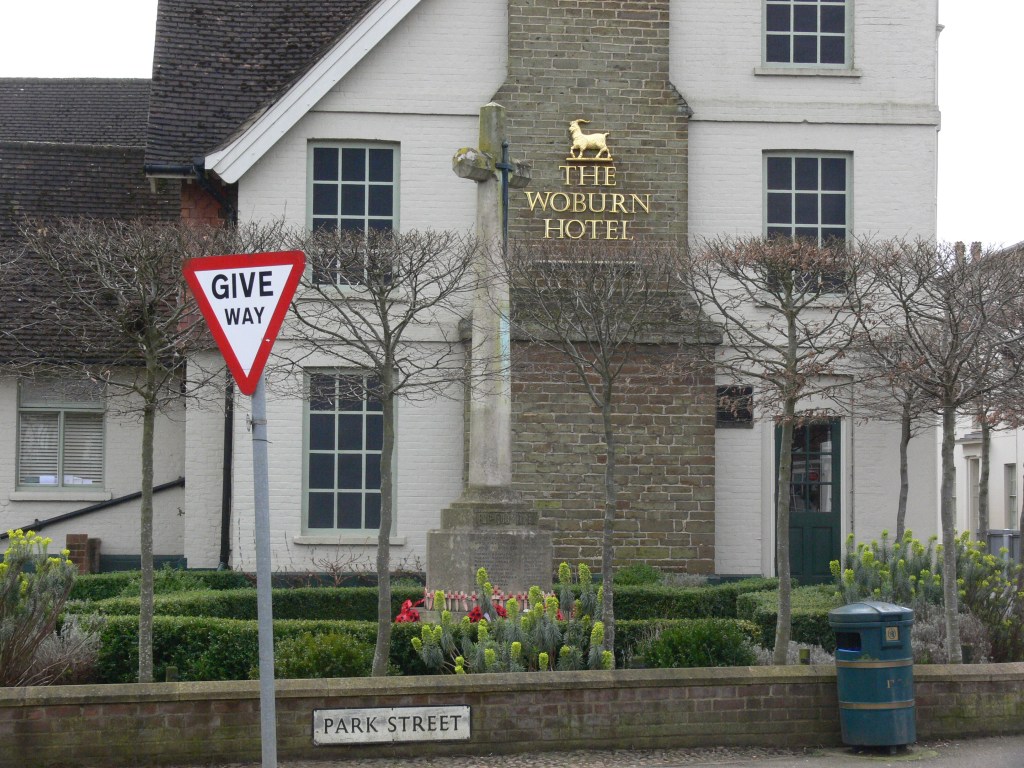 I went to Woburn and took photographs of things I felt were unique to the location, such as signage, remembrance memorial, old bus stop and church: