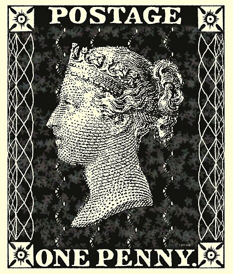 Penny Black Stamp with Queen Victoria, released 1840.