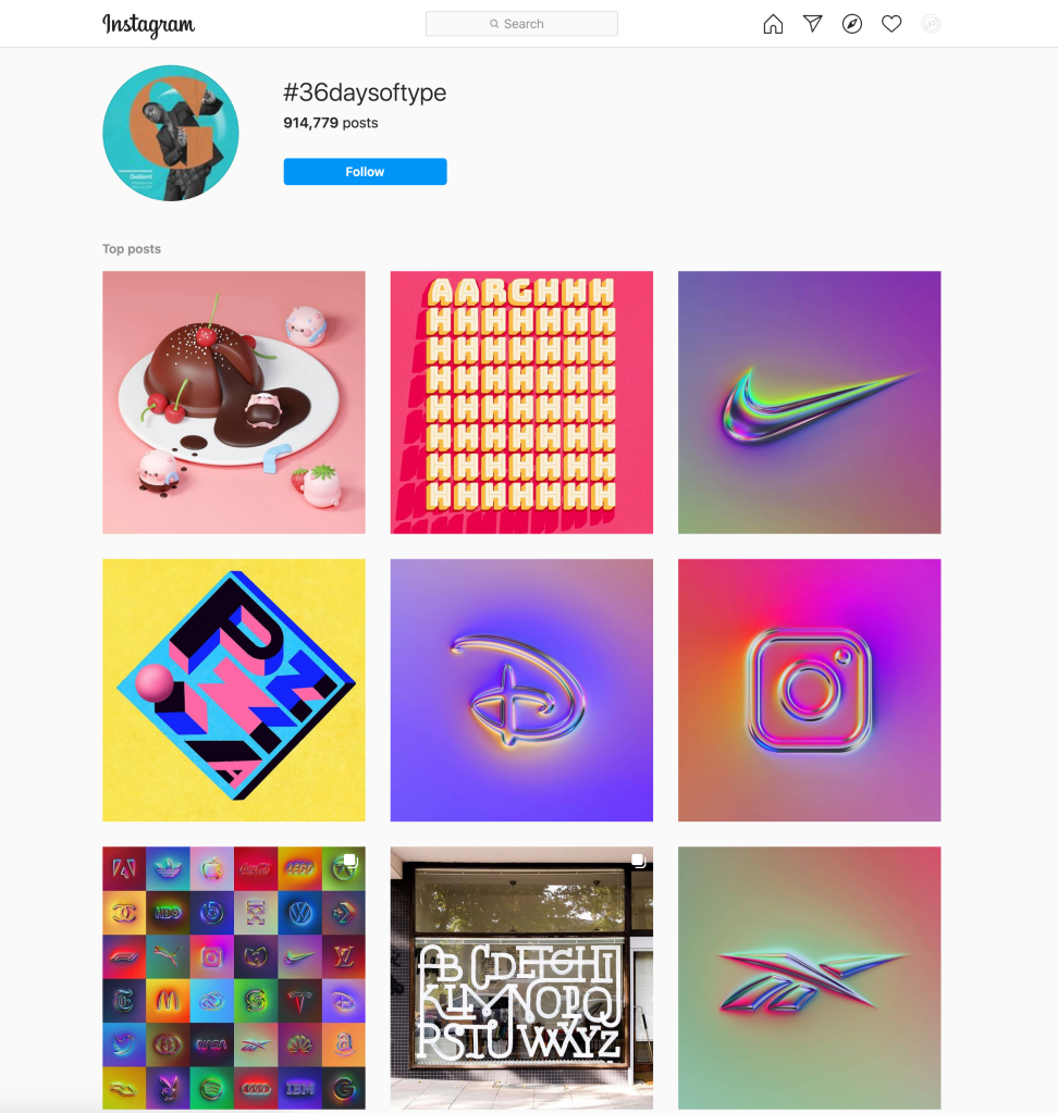 Lettering is huge on social media at the moment – at least that’s what I’ve found when I use Instagram for my own personal use. I am interested in lettering so I do follow plenty of accounts, but there always seems to be challenges on social media that high ranking creatives do to get followers/keep creative. I thought I’d explore some of the trends/sites that encourage these activities as they could be a good source of inspiration for some of my concepts in my workshop pack: