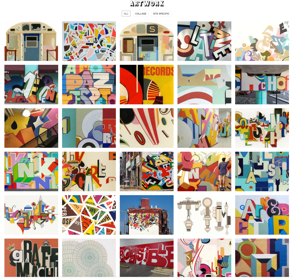 These very much remind me of Saul Bass who is one of my favourite designers. His work appears handmade because it was hand drawn. I think there’s an element of Bass massively used design still today, and many aspiring designers are using film as influence in their work. Likewise with David Carson; elements of his work are playful and highlight the very nature of mix and match craft. I also have researched into Greg Lamarche as his playful lettering in large scale on buildings is really fun! It’s inspiring – there’s something really lovely about blowing up tiny letters you would read in physical print format into huge type on buildings. It’s all about play with design, and this is the message I really want to get across in the workshop.