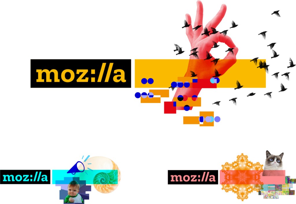 “As we pushed the idea further, we were able to make the coloured bars allude to internet browser address bars and discovered that we could fill these bars with both type, messages, images, or a combination – alluding to a typical web journey. It started to become a very flexible system. And we had always enjoyed the thought that this was a logo you could type, as in ‘moz://a’.“