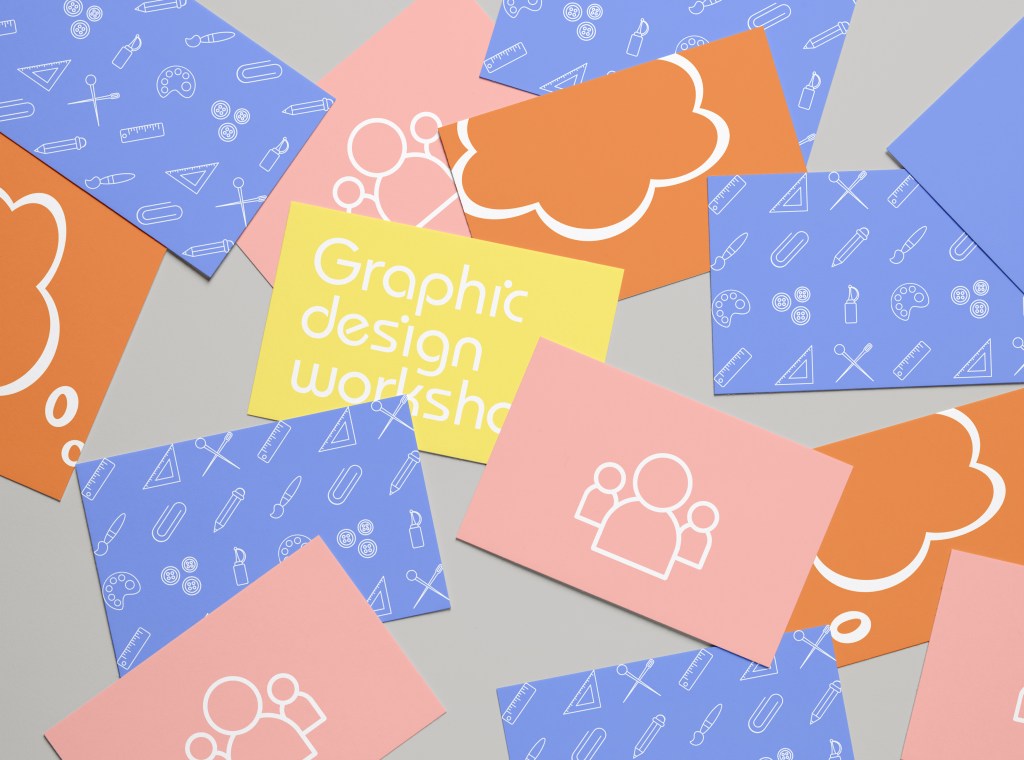 Collaboration activities – pink cards with team members icon