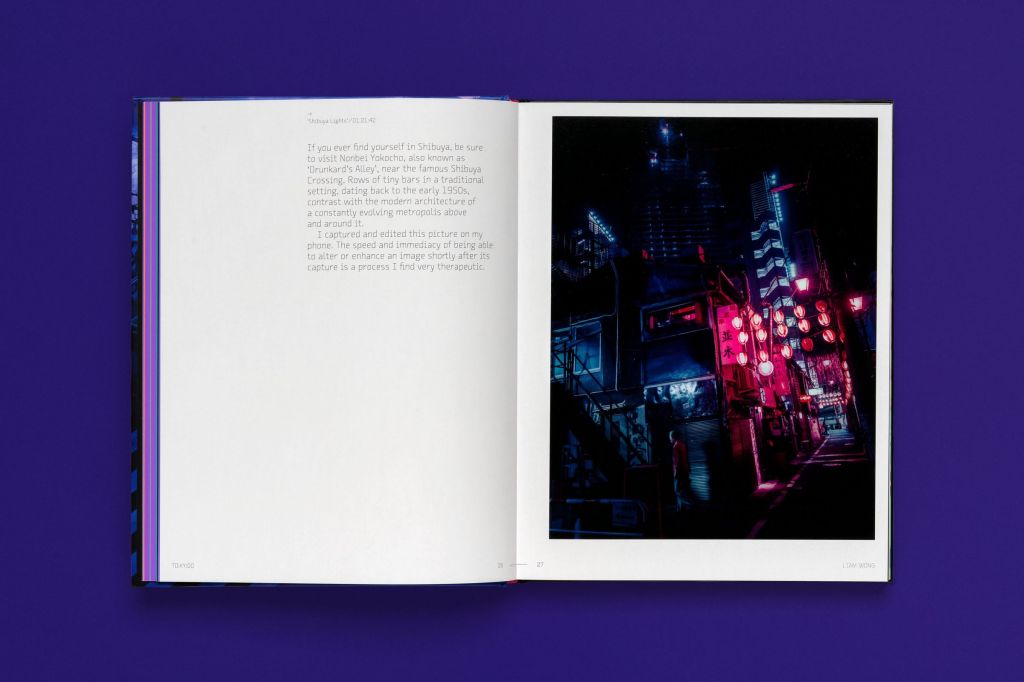 “Funded on Volume, breaking UK book crowdfunding records, this collection of photographer Liam Wong’s nighttime images of Tokyo embraces his cyberpunk and science fiction influences, making use of 5 neon Pantones throughout and utilising a print technique which pushes colour saturation beyond the typical CMYK gamut. The typeface used throughout is 45/90, designed by Henrik Kubel of London-based A2-TYPE, licensed exclusively for this publication.” – Source