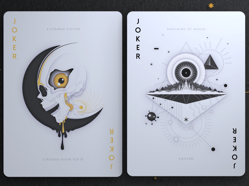 Images: Various examples of joker cards – traditionally there would be a joker that is illustrated as a jester. Modern day joker cards can be illustrated as anything.
