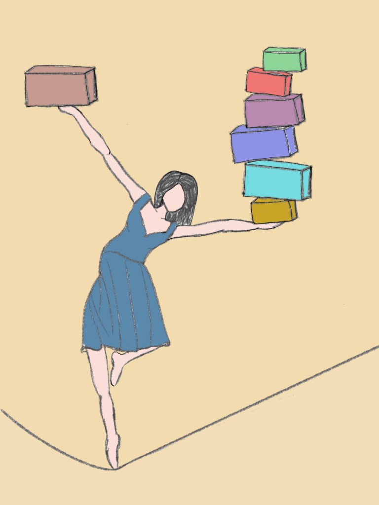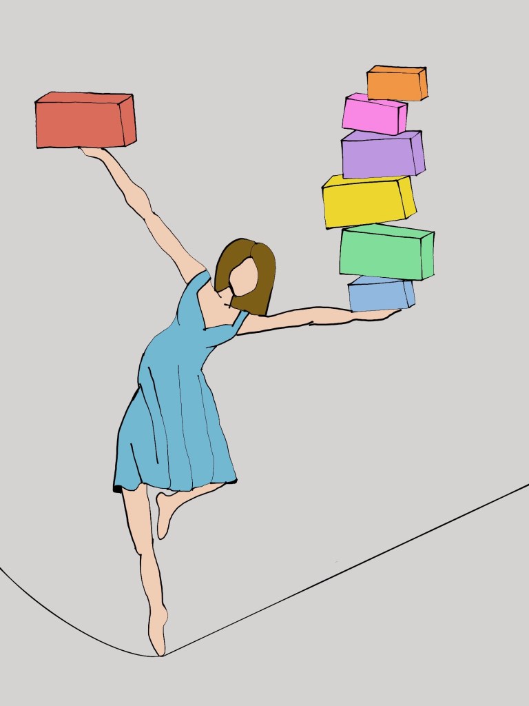 For my final piece; the idea of walking a tightrope and juggling multiple things has stood out the most from my research, and here are some basic illustrations from google which are sparking some ideas: