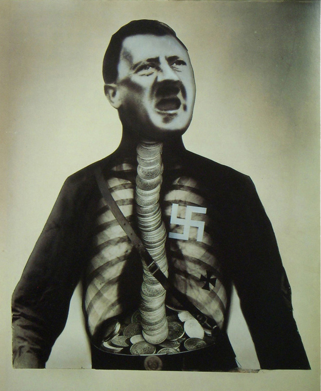 “One such political artist was John Heartfield, a German artist who received formative training in advertising with the Berlin Dada movement, and was one of the key components in the development of photo-montage.”