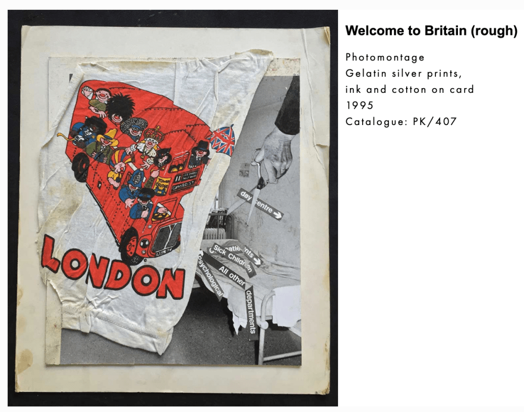 Peter Kennard example below. Welcome to Britain (rough) cleverly depicts the tourist industry in London and how money is not being spent on the population’s needs (such as helping NHS and poverty):