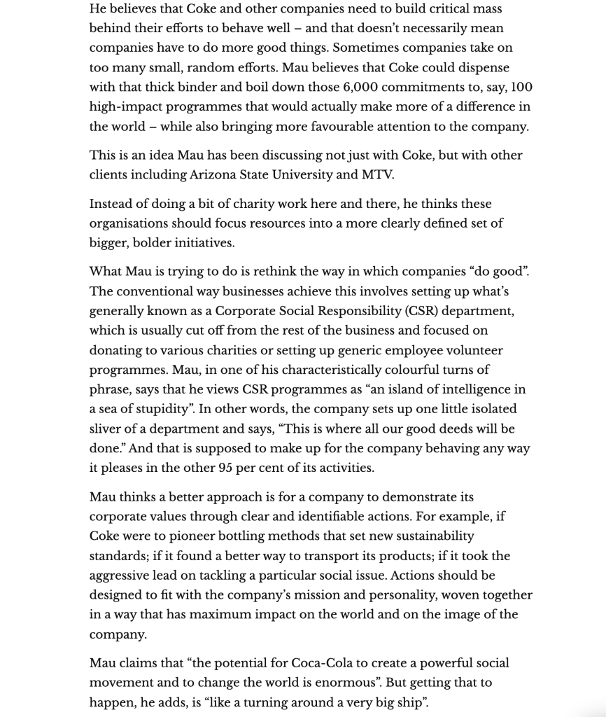When thinking about Eco-Collective, I believe it’s looking at transforming the system, the industry and the way packaging is created, as opposed to just creating more sustainable materials. Obviously they will help, but like May demonstrates below with Coca-Cola – the scale of pollution with large companies is too large and something much bigger needs to be put in place to improve our future and reduce waste.