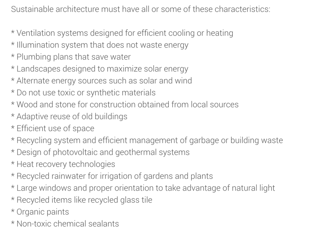 Sustainable architecture must have all or some of these characteristics: