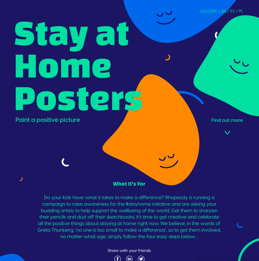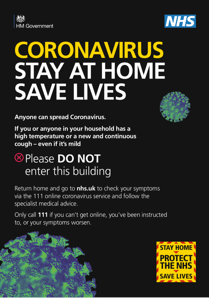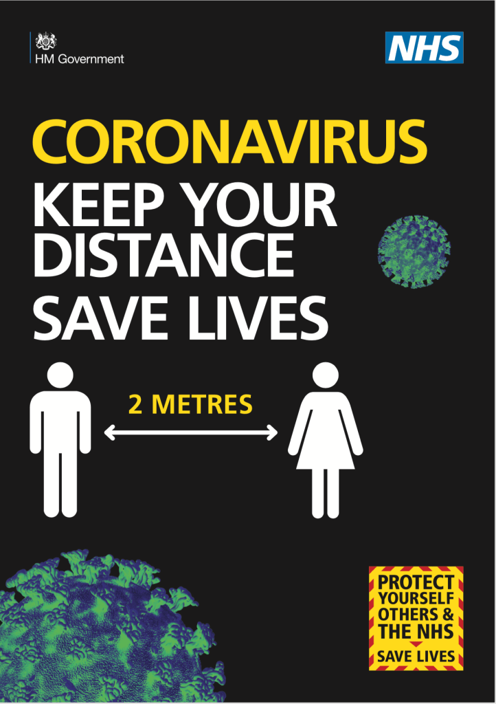 Just from looking at these posters I have come to the conclusion I am desperately wanting to re-design them from a creative, NHS friendly, stay-at-home design perspective. What strikes me most about these posters is that the only recognisable splash of blue we have on them is the NHS logo. Why? Surely these posters need to be celebrating the NHS during this time and blue is instantly recognisable as a healthcare colour. Black is daunting, like a plague. Yellow screams danger, and there is not one sense of the whole community behind coronavirus – the self-isolation, the home-schooling, the social-distancing, healthcare workers, supermarket workers, the way people are becoming creative, gardening/crafting/painting/redecorating. There is something wonderful that is coming out of this – a community.